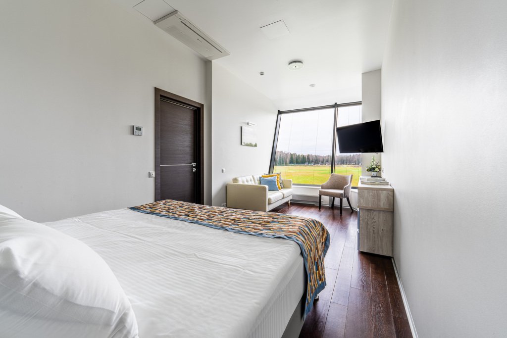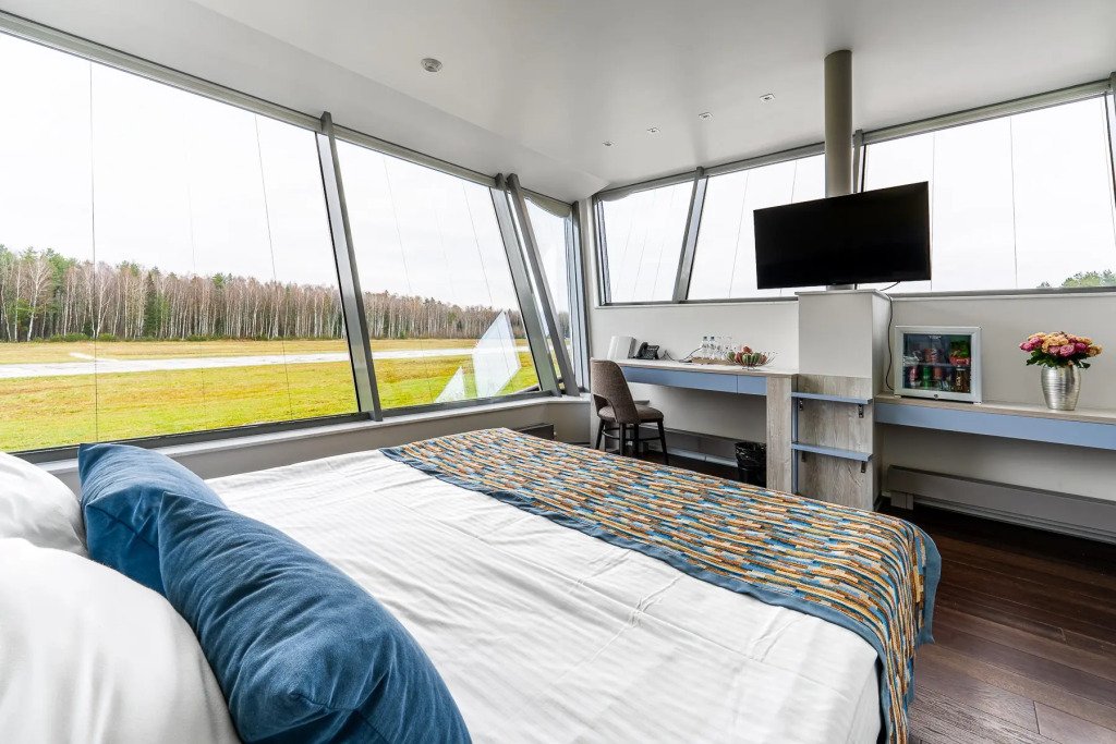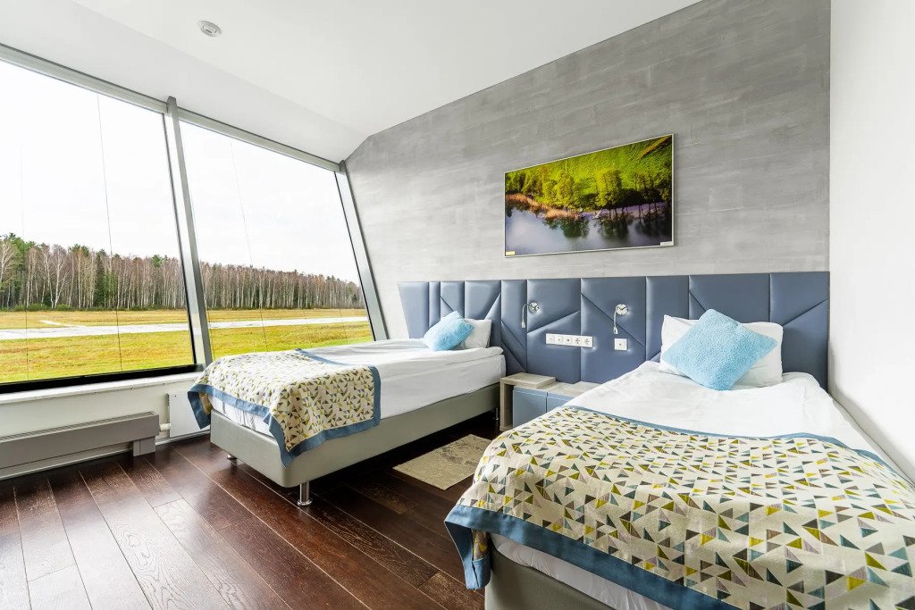 Удивительные номера категории «Стандарт +» 18 м² с панорамным видом. Элегантно оформленные номера с потрясающим видом на взлётно-посадочную полосу отвечают всем современным требованиям комфорта.