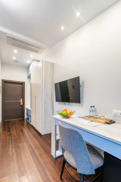 Номера оборудованы одной или двумя раздельными кроватями (при желании можно сдвинуть), рабочей зоной, сейфом, телевизором, интернетом, кондиционером и холодильником-мини-баром. Ванная комната с косметическими принадлежностями, халатами, тапочками, феном и комплектом полотенец.