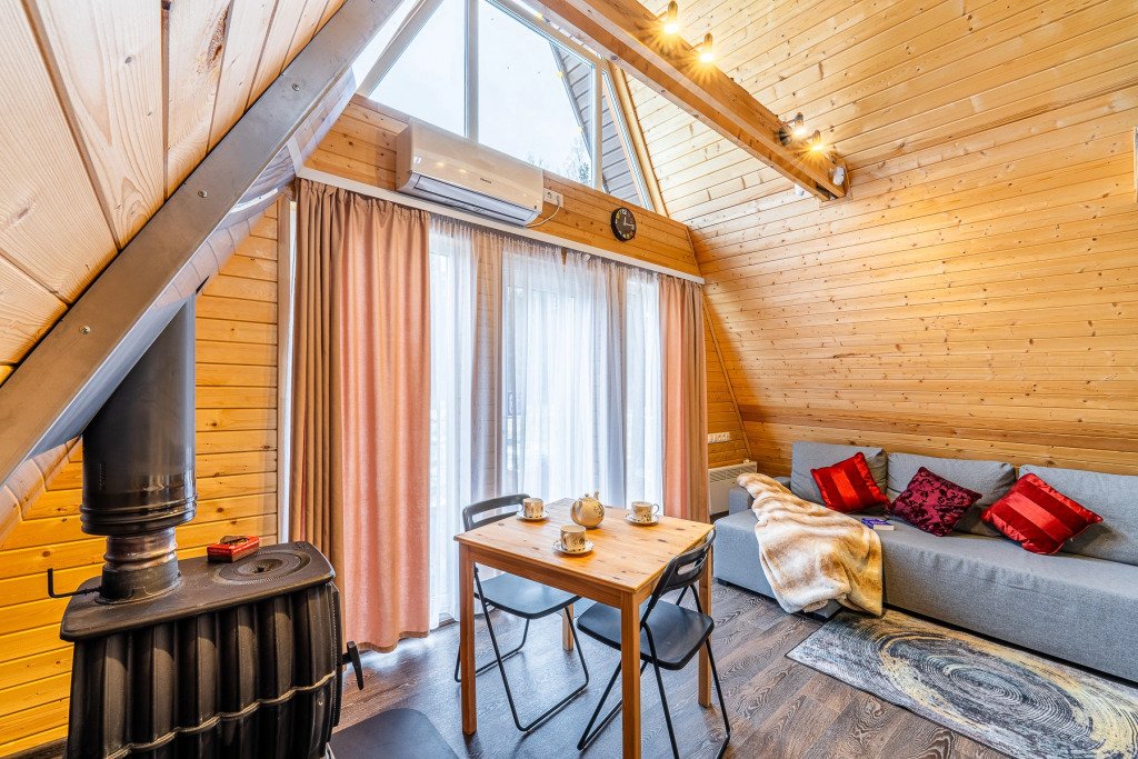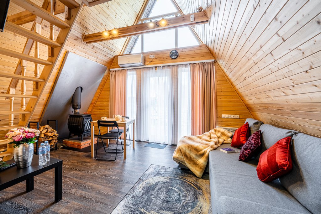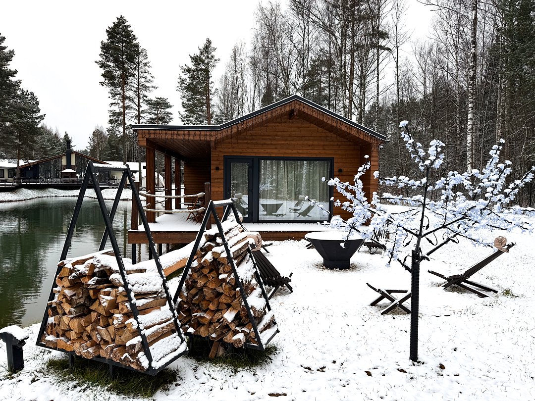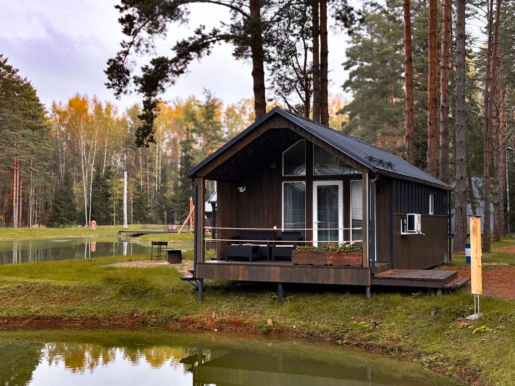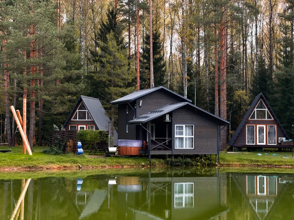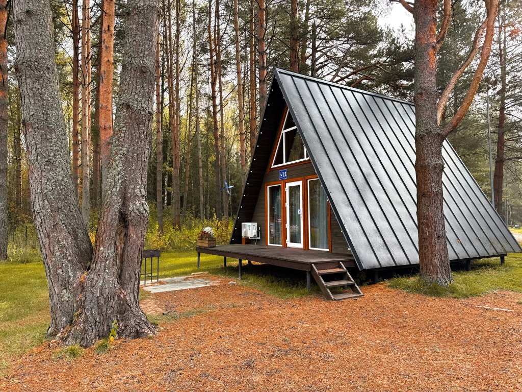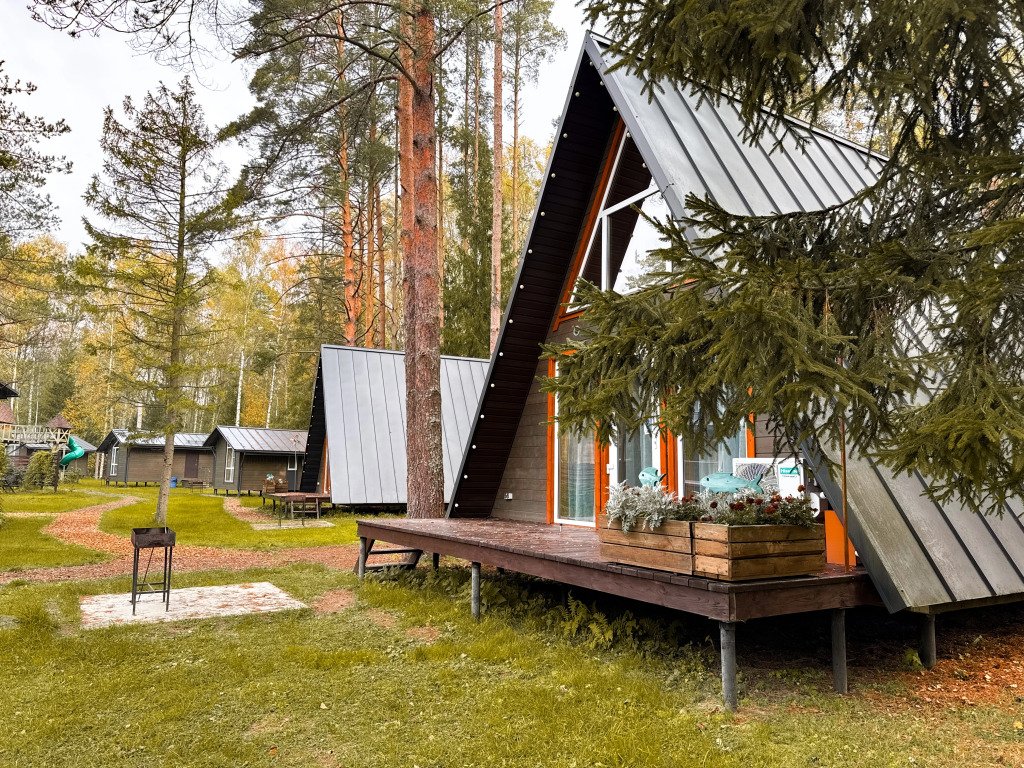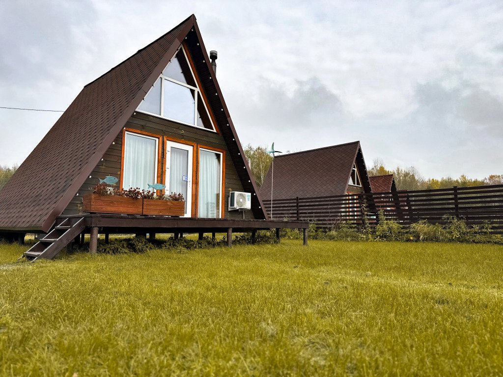 Сказочные, эстетичные, фотогеничные дома А-фрейм на берегу озера. Прекрасно подходит для постоянного проживания молодым и пожилым, очень нравится детям.