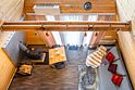 Просторная уютная гостиная с печь-камином, диваном, небольшой кухней, набором посуды, телевизором, интернетом. Два выхода — центральный и патио с видом на воду и доступом к рыбной ловле (лето).