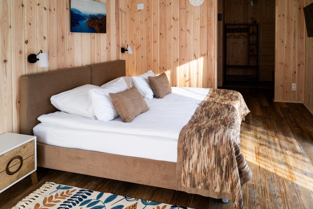 Теплый коттедж для отдыха у озера. В пешей доступности от отеля расположены дома для круглогодичного проживания дружной семьей или компанией друзей, предпочитающей уют и свободу.