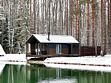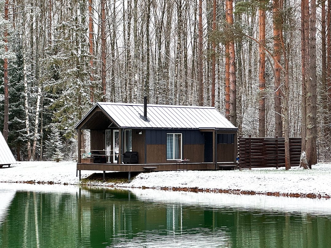 Теплый двухместный коттедж для отдыха у озера. Уютный дом с телевизором, интернетом, кондиционером, эл. чайником и мини-холодильником. Выход с видом на воду и доступом к рыбной ловле (лето).