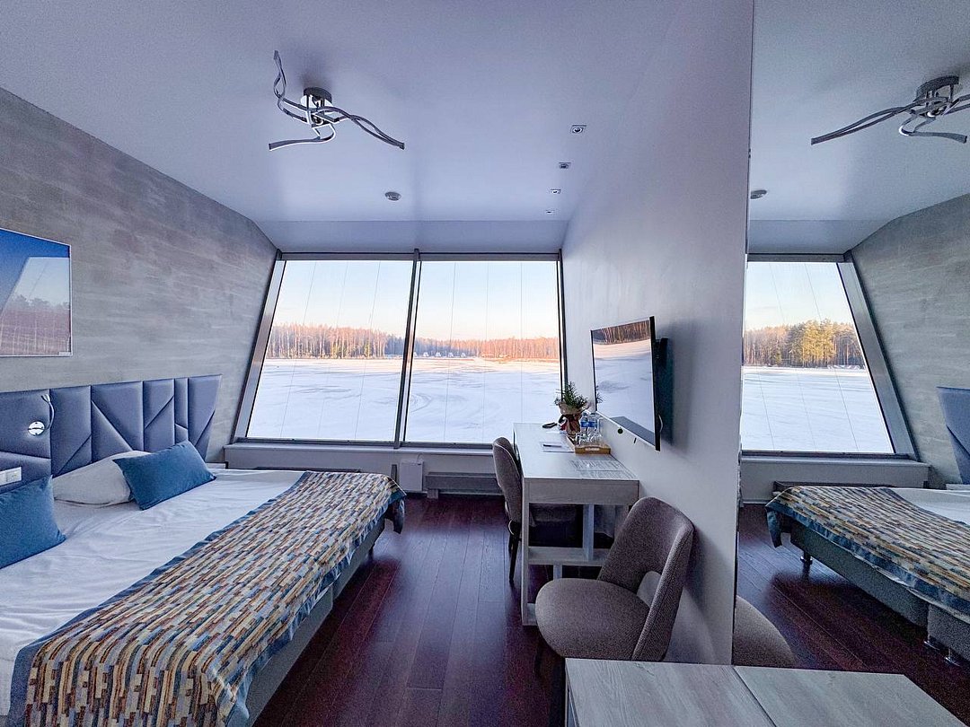 Особенность номера – шикарные панорамные окна с эффектом широкоугольного объектива.