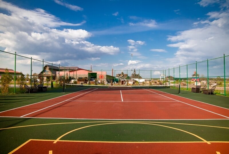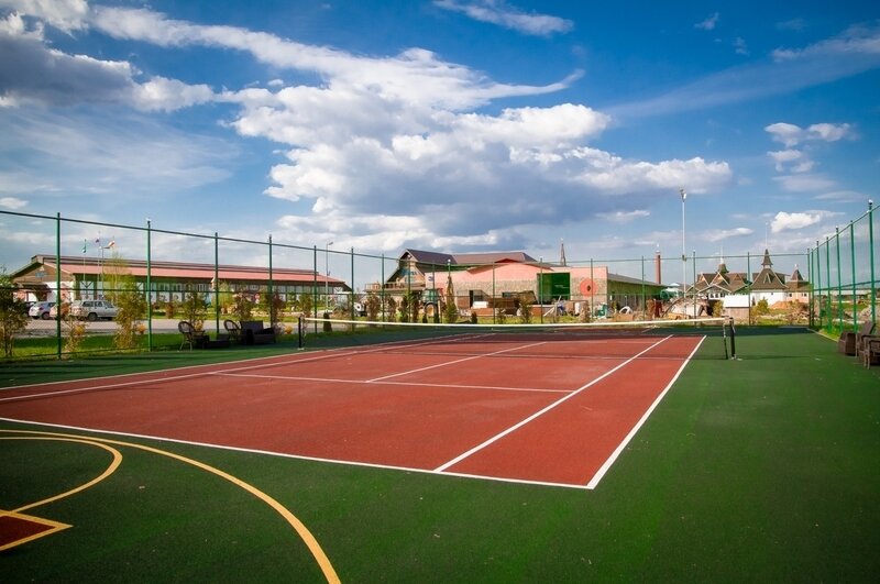 Отель предлагает различные категории комфортабельных номеров с возможностью размещения до 6 гостей. Территория комплекса включает конюшни и ипподром, гриль-домики и зоны для мангала, спортивные и детские площадки, а также теннисный корт.