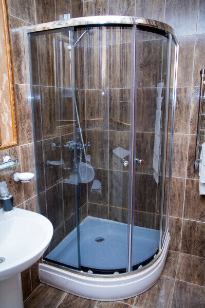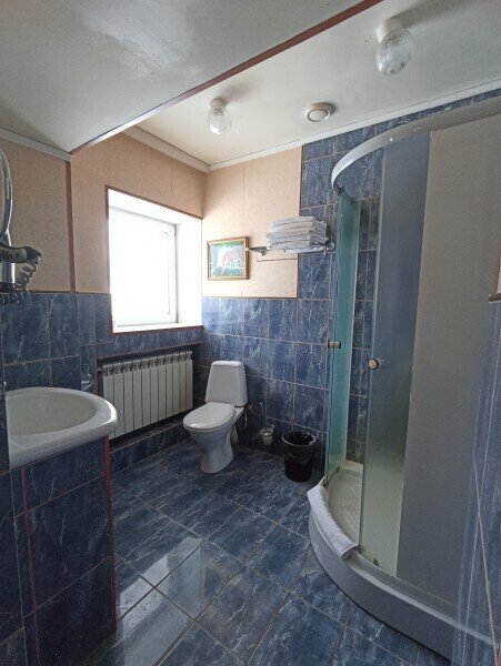 Стандартный пятиместный номер, оборудованный телевизором. Санузел с душевой кабиной, косметическим зеркалом и феном.