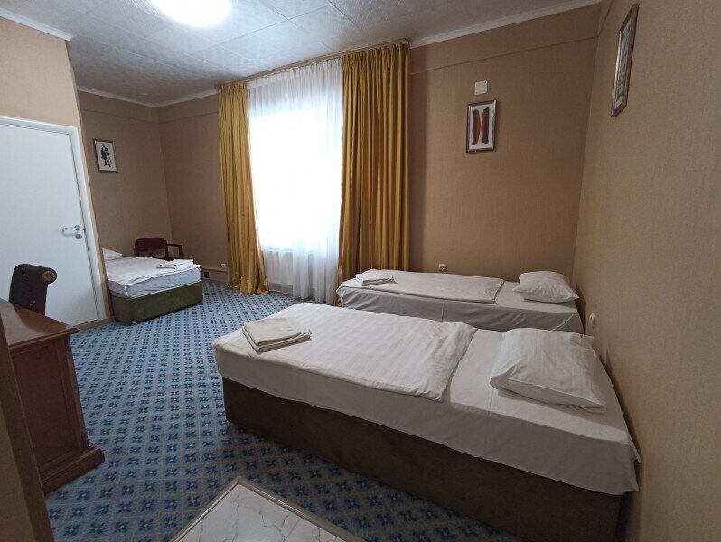 Стандартный номер с раздельными кроватями располагается в 3-м корпусе гостиничного комплекса. Номер с собственным санузлом, укомплектованным гигиеническими средствами первой необходимости и полотенцами. Номер оснащен, телевизором с плоским экраном, феном.