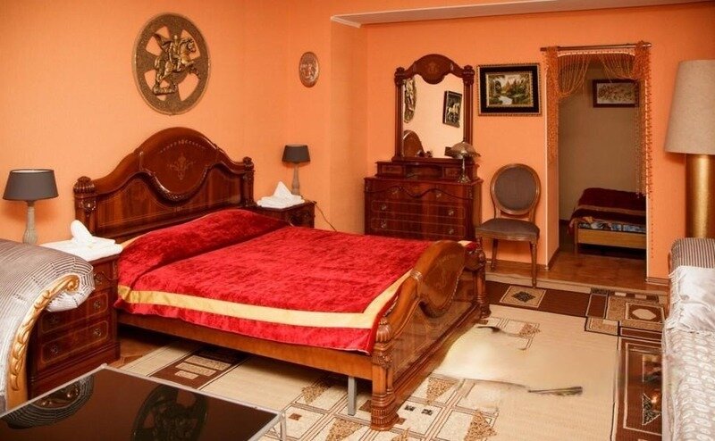 В номер предоставляются туалетно-косметические принадлежности, халаты, тапочки, полотенца, фен, утюг (по востребованию). Номер имеет отдельный вход с улицы.