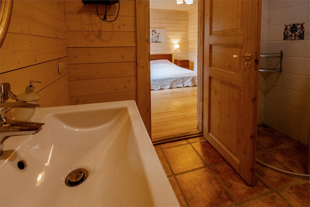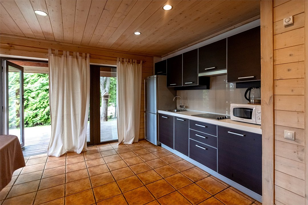 Коттеджи Сеня представляет собой удобный современный дом, предназначенный для комфортного проживания 6-8 гостей. Дом выполнен в светлой цветовой гамме. В доме большой общий зал, где располагаются кухня (оснащена посудомоечной машиной), столовая и гостиная, из которой можно выйти сразу на личную крытую террасу, с зоной для барбекю, на отдельной территории дома, огороженной хвойной живой изгородью. На первом этаже две изолированные спальни, одна с санузлом с душевой кабиной, и второй санузел (с душевой кабиной). Третья спальня находиться на бельэтаже.Услуги и удобства