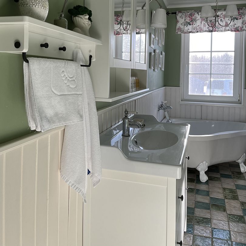 Жили мы в большом доме 200кв.Дом настолько чист и просторен,что хочется остаться там жить..Природа вокруг, сказочная.