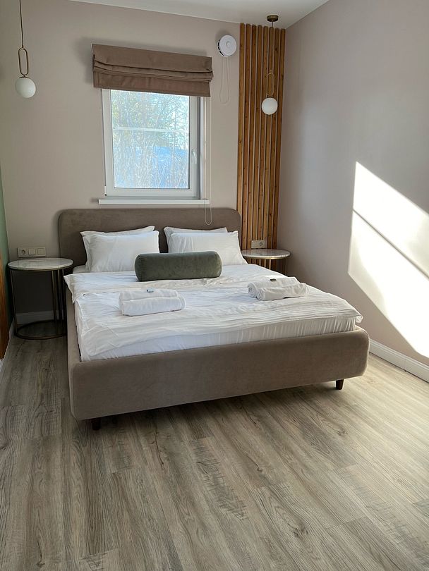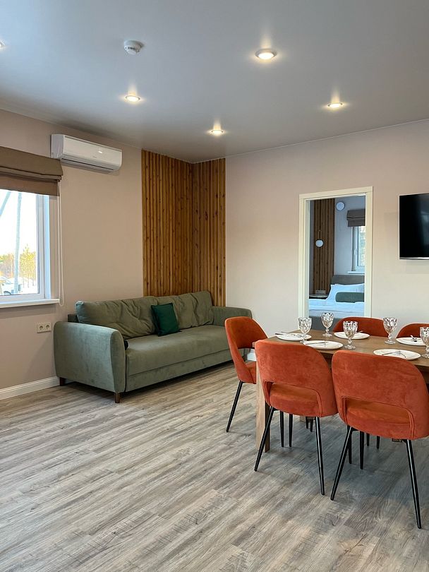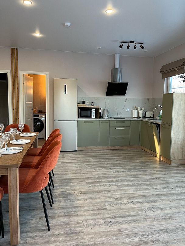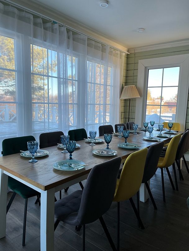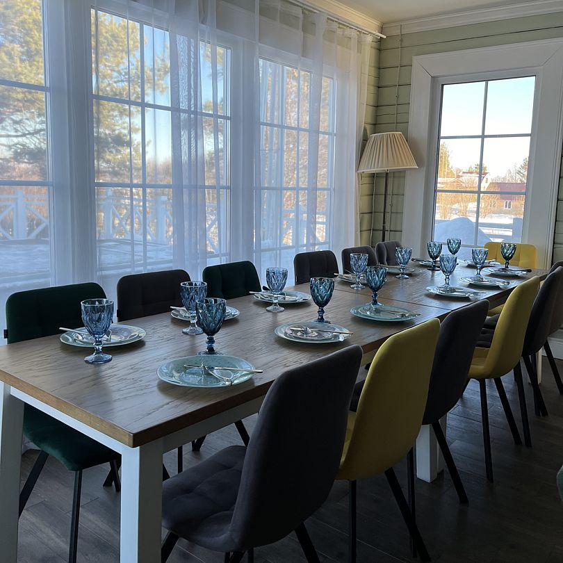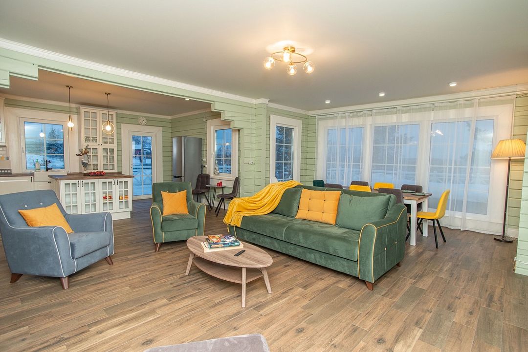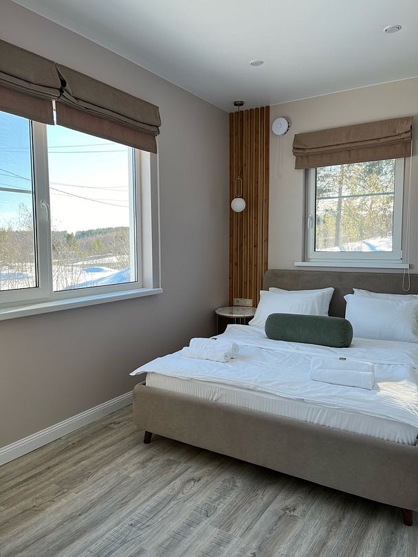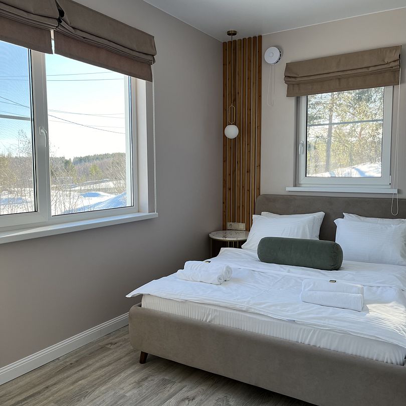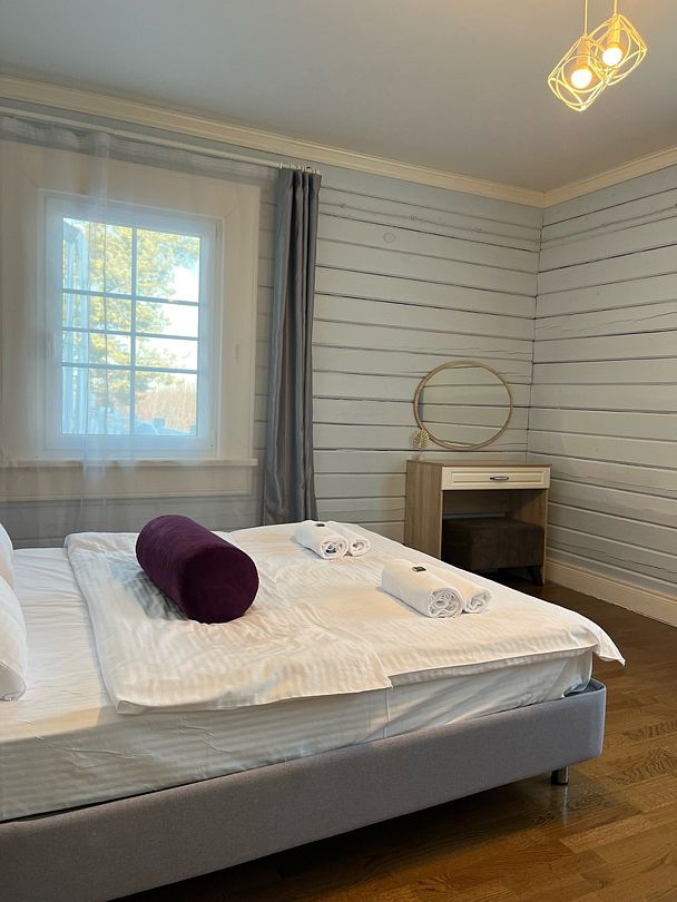 Просторный тёплый дом площадью 200 кв.м идеально подойдёт для отдыха большой компании или нескольких семей. В доме — 5 спален, гостиная с камином, кухня, 2 санузла и гардеробная.
