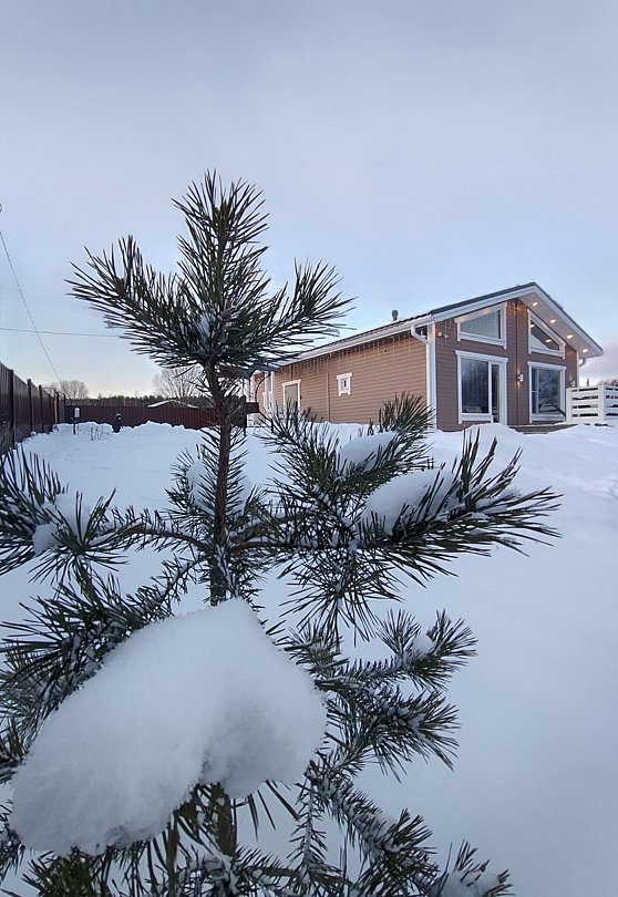 Новый коттедж в скандинавском стиле предлагает все необходимое для идеального отдыха: панорамные виды, финскую сауну, теплый пол, полностью оборудованную кухню, Wi-Fi и Smart TV.