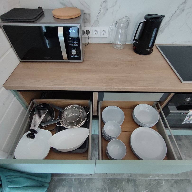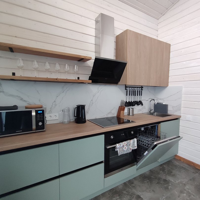 Есть все необходимое: холодильник, стиральная машина, микроволновка, посудомоечная машина, тостер, мангал, чайник, варочная поверхность, духовой шкаф, качественная посуда и т.д. Есть Wi-Fi и smart TV, шустрый интернет для тех, кому приходится удаленно работать даже на отдыхе.