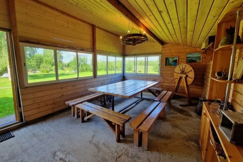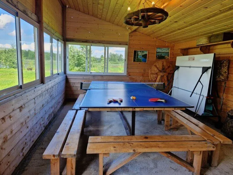 Территория вокруг дома включает в себя множество удобств для отдыха: крытую беседку, где можно укрыться от непогоды, мангал и коптильню для приготовления блюд на открытом воздухе, а также баню на дровах. Любители активного отдыха могут воспользоваться теннисным столом и поиграть в бадминтон.