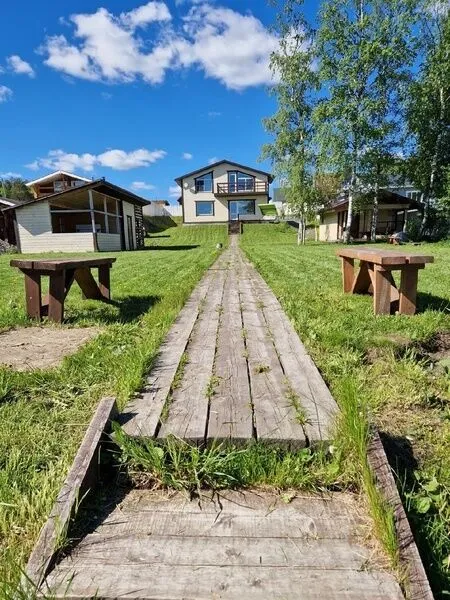Гостевой дом расположен в селе Кончезеро, на первой береговой линии живописного озера Пертозеро. Этот уютный дом рассчитан на размещение 7-12 гостей и станет идеальным местом для семейного отдыха. На первом этаже расположены просторная гостиная с телевизором, совмещенный санузел со стиральной машиной и полностью оборудованная кухня. На втором этаже находятся три спальные комнаты с комфортными кроватями и раскладными диванами.