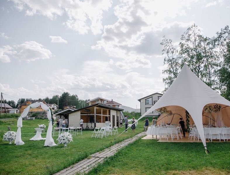 Уютная крытая беседка станет идеальным укрытием от непогоды и насекомых для гостей. Эта функциональная зона отдыха предоставляет возможности для развлечений — обеденный стол в беседке легко трансформируется в теннисный, позволяя с легкостью организовать любимые игры прямо на территории гостевого дома.