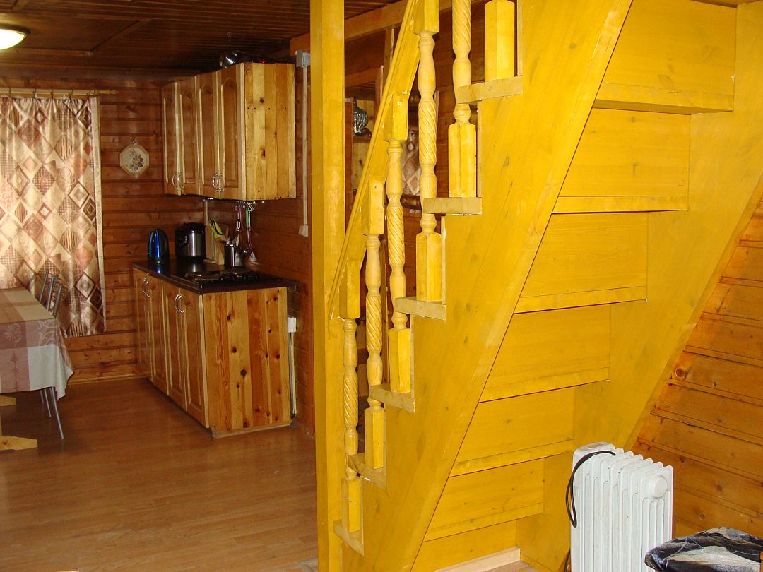 Сам коттедж очень тёплый, уютный и комфортный, со всей необходимой бытовой техникой ( холодильник, плита и духовка, посудомоечная машина, микроволновка, пылесос , телевизор и тостер). Посуды тоже достаточно. На первом этаже находится кухня, а на втором три спальни, кровати удобные.