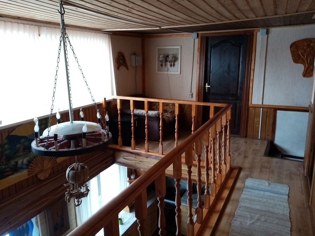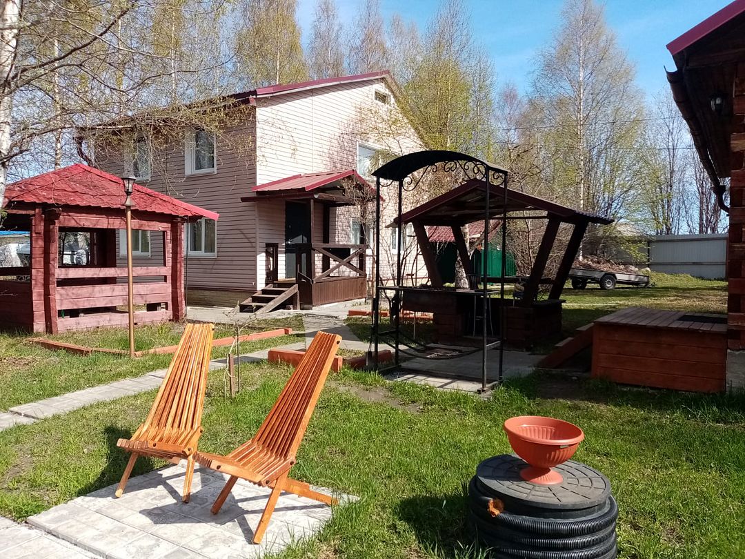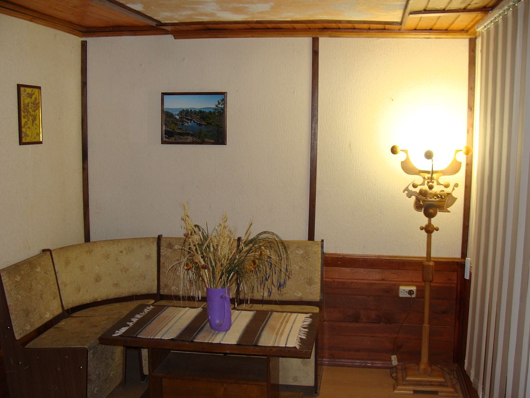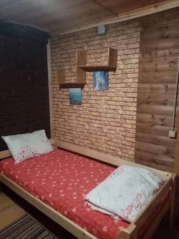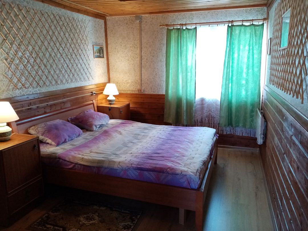 Гостевой дом №1 расположен на 20 сотках, полностью закрытая территория с летней и зимней беседкой, мангалом, барбекю. Для размещения гостей предоставляются три отдельные комнаты.Дом рассчитан : на 6 основных мест + 3 дополнительных места. Первая комната: 12 кв. м.на втором этаже , спальные места: кровать двуспальная; дополнительное спальное место - детская кровать, прикроватные тумбочки ,стулья. Вторая комната: 13 кв. м. на втором этаже ,спальные места - две кровати "полуторки"; платяной шкаф, прикроватная тумбочка, стулья. Третья комната: 16 м.кв. на первом этаже ,спальные места- две кровати lполуторки; + печь лежанка. Четвёртая комната: (проходная) 12 м.кв., с библиотекой, кресла , стол, тахта; На первом этаже общая кухня-столовая 20 кв. м. Печь "шведка" и "лежанка", закрытый камин, оборудованная кухня с посудой, диван,2 кресла, обеденный стол и стулья, холодильник, микроволновая печь, мультиварка. Плазменный телевизор. Спутниковое ТВ .Пастельное бельё входит в стоимость проживания. Туалет с душевой кабинкой также расположен на первом этаже дома, в санузле тёплый пол, бойлер на 100 литров, стиральная машина, артезианская вода со своей скважины. БАНИ. 1.Баня русская на дровах( 38 м.2 .большая комната отдыха 14 м2 с кухней , камин, спутниковое ТВ, эл.чайником, микроволновкой, парилка , душевая кабина, эл.бойлер на 100 литров, большая веранда, рядом мангал, беседки) 2.Баня из бруса Карельской сосны , год постройки 2016.Большая комната отдыха с кухней, микроволновой печью, самоваром, уютная парилка на 2 человек, бойлер на 50 литров, во дворе беседка для отдыха, мангал. (за дополнительную плату чай из самовара на Карельских травах, домашние варенья, мёд с пасеки.)