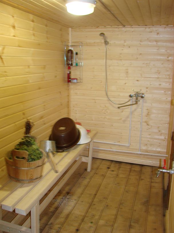 Обливалка у бани — бесплатно.