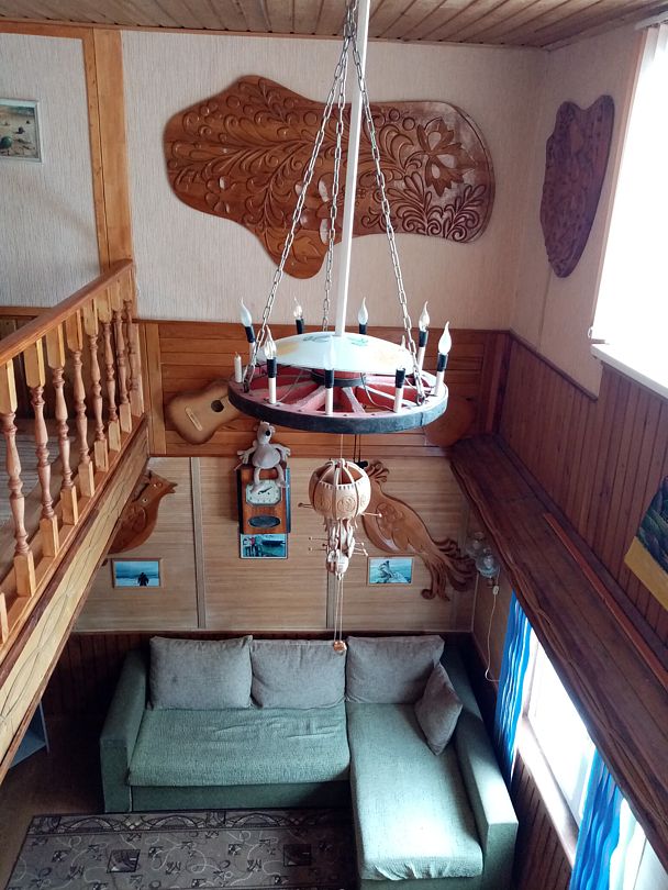 Озеро покрыто было льдом толщиной около 40 см и катались по нему на лыжах - очень круто ). Вокруг почти никого нет, только кое-где местные рыбаки рыбачат. Ещё мы заказывали баню, она прям возле домика находится.НедостаткиНе указаны
