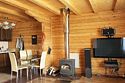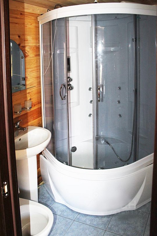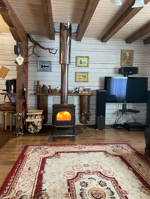 На первом этаже гостиная с камином, отопление: конвекторы + печь-камин, полностью оборудованная бытовой техникой кухня (посудомоечная машина, плита стеклокерамика, 2-х камерный холодильник, микроволновая печь, стиральная машина-автомат), душевая кабина. с/узел. Везде теплые полы! Кондиционеры. В гостиной большой 2-х спальный раздвигающийся диван.