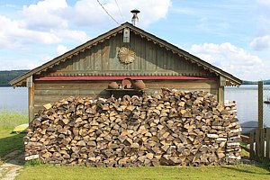 Баня дровяная на берегу озера.