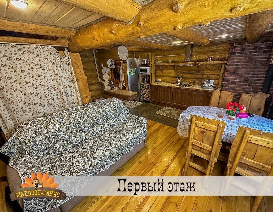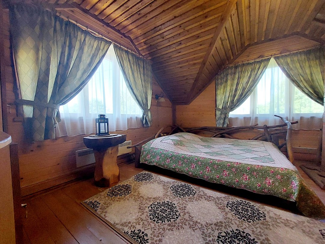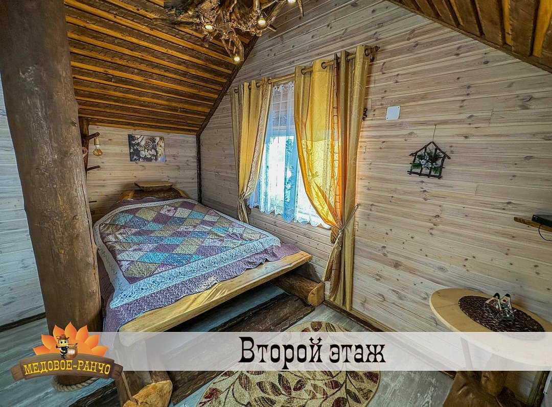 На 2-м этаже две раздельные спальни, Первая — с большой рубленной кроватью и эксклюзивной «люстрой» из дерева! Вторая — с двухместным диваном и двухъярусной рубленной кроватью, которая придется по душе, как взрослым, так и детям!