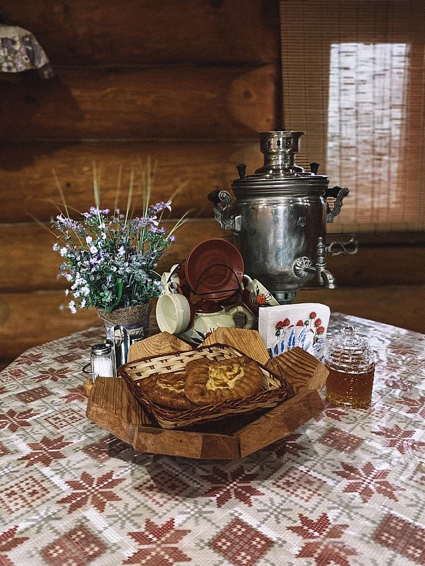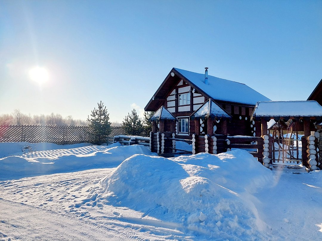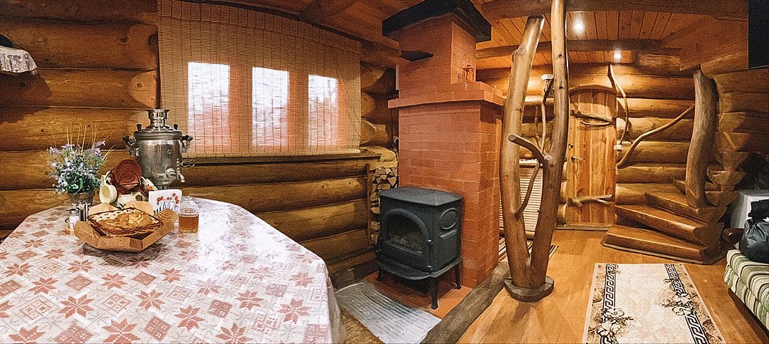 Дома, построенные из вековых брёвен, создают атмосферу уютной деревенской избы, где всё сделано вручную из натуральных материалов.