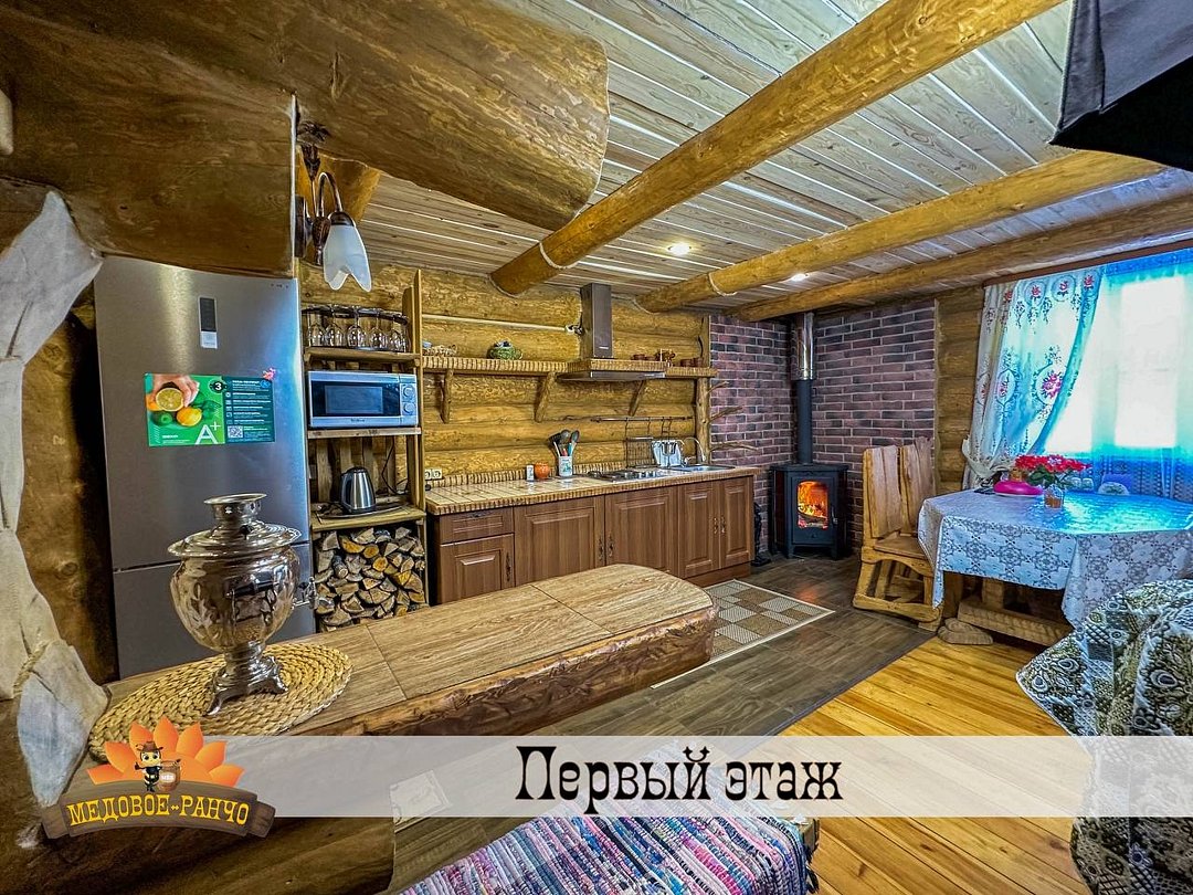 На 1-м этаже: уютная гостиная с камином на дровах, двухместный раскладывающейся диван.