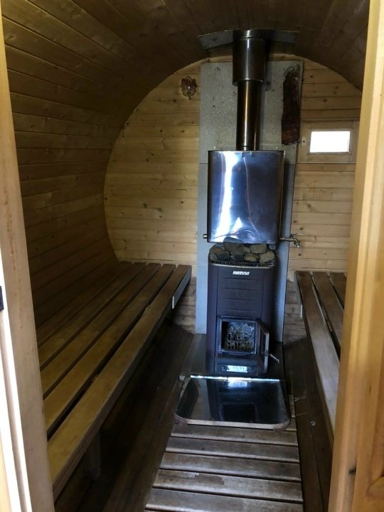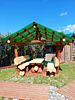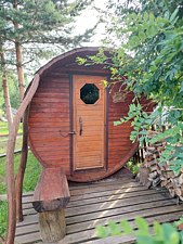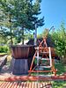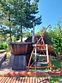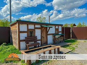Красивая ухоженная территория где находится уникальная баня – бочка с целебной прополисной парной и банный чан.