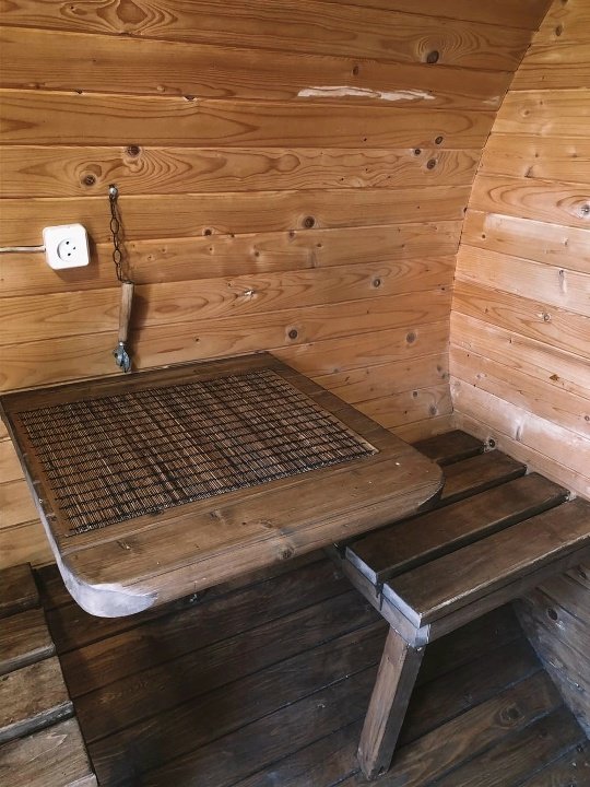 На 2-м этаже две рубленные кровати — одна большая! — 2-х спальная, вторая – односпальная.