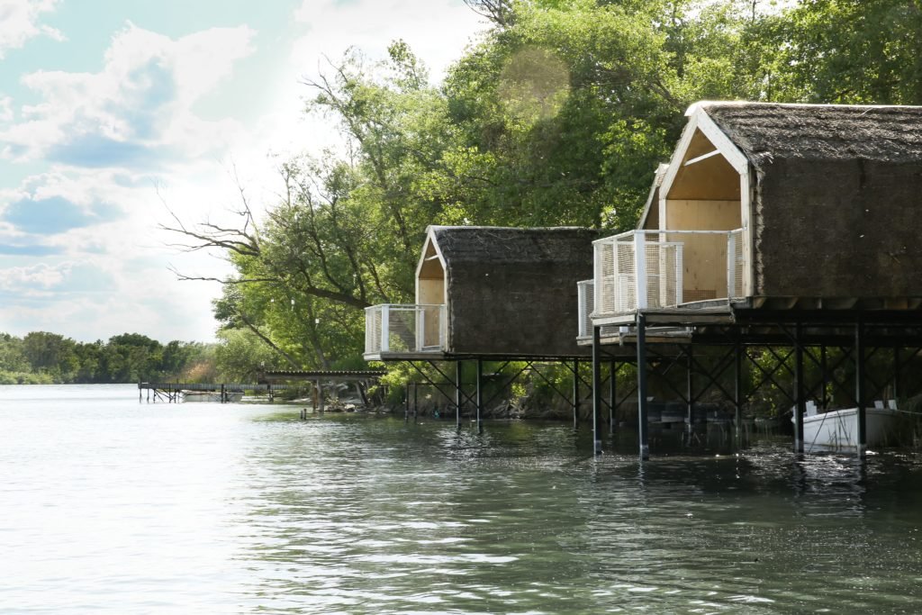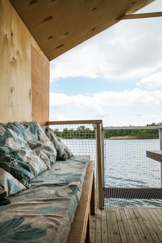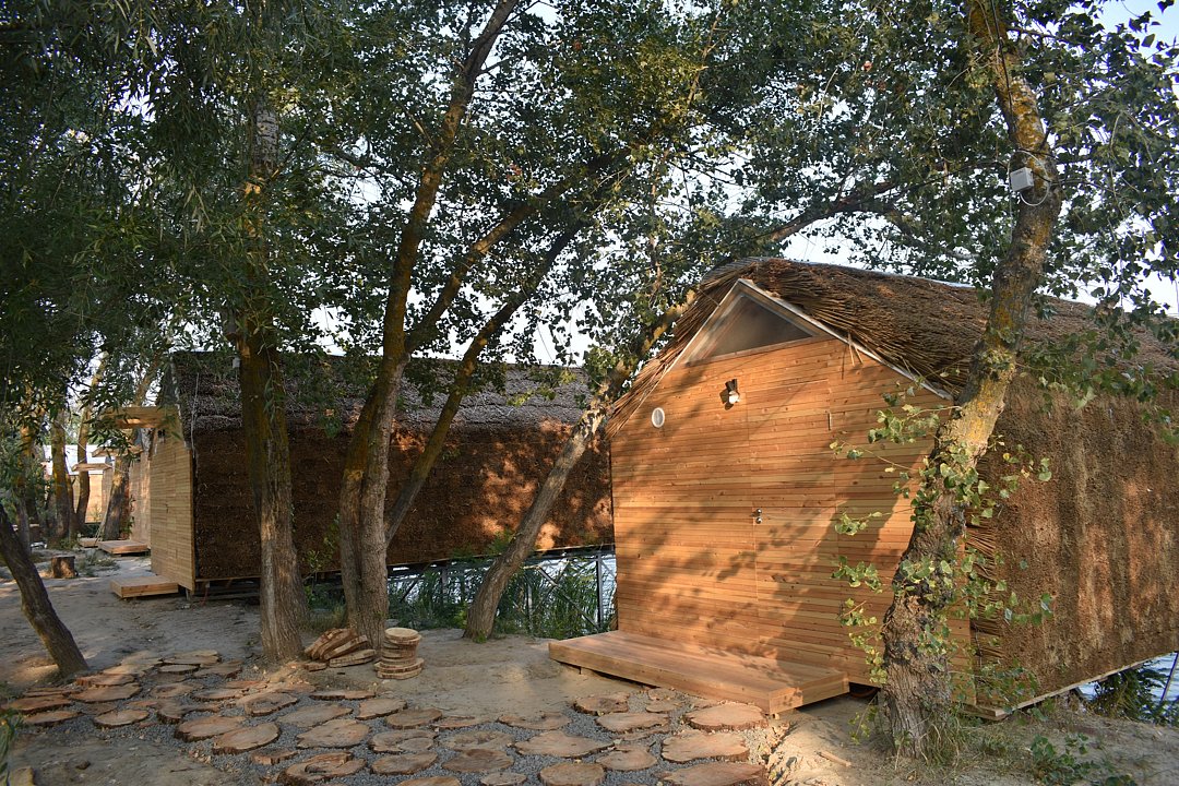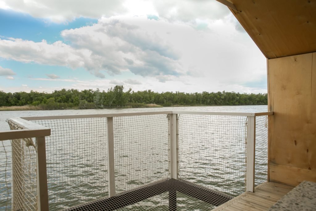 Домик на воде, построенный из экологичных материалов, совмещает в себе комфорт гостиничного номера и отдых на лоне природы. Глэмпинг представляет собой домик с одной комнатной, общей площадью 28 м², с одним санузлом, балконом и гамаком прям над Доном.