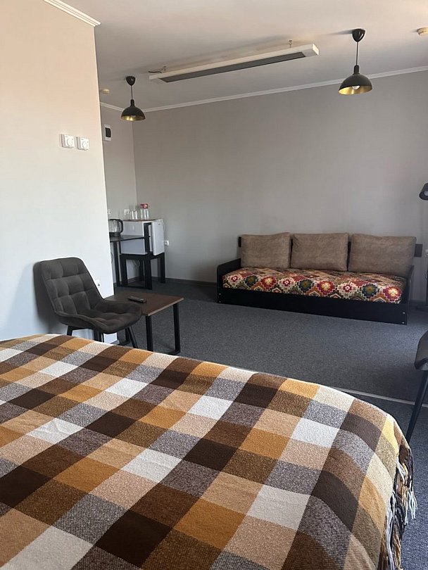 Номер стандарт + отлично подходит для проживания семьей из трех человек. Этот номер представляет собой апартаменты общей площадью 25 м², со своим санузлом.