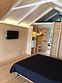 Бунгало представляет собой просторную комнату 34 м² со своим санузлом и большой террасой.
