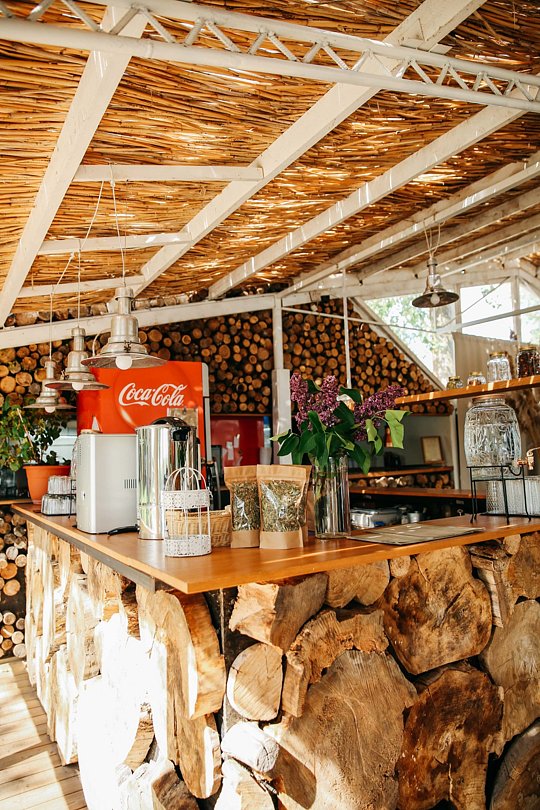 Меню радует разнообразием блюд донской кухни, приготовленных из свежих фермерских продуктов по традиционным казачьим рецептам. Особая изюминка — блюдо «жарьсам», позволяющее гостям самостоятельно готовить маринованное мясо и овощи на мини-мангале, установленном прямо за столом.