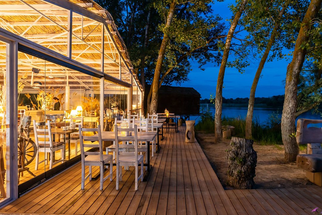Читать полностьюРесторан гостиничного комплекса «Стародонье» расположен на живописном берегу Дона, где экологичные материалы в архитектуре органично вписываются в природный ландшафт. Витражные стены и открытая веранда позволяют наслаждаться захватывающими видами.