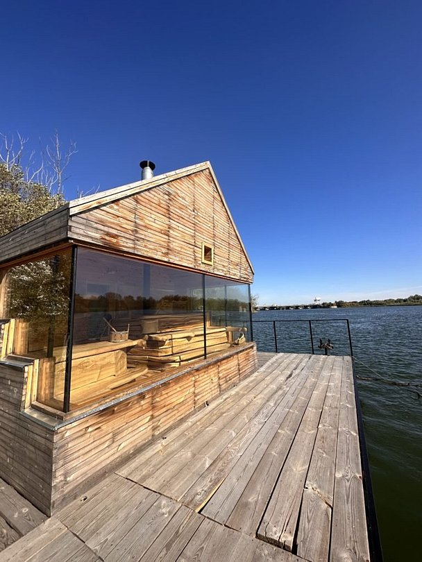 Особенной изюминкой комплекса является уникальная русская баня на воде — деревянная, с панорамными окнами, открывающими вид на реку Дон. Легкое покачивание бани во время парения приносит глубокое расслабление и наполняет энергией.