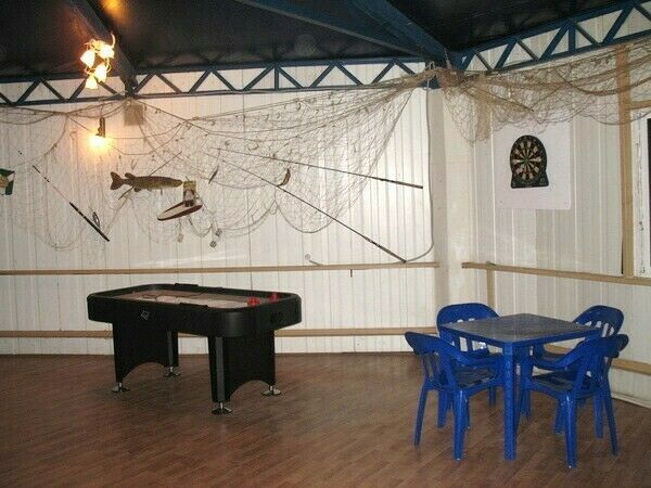 На обширной территории размещены несколько домиков для уютного проживания и уютное кафе для изысканного трехразового питания. Есть летняя кухня, мангальные зоны, коптильни и сушильни для рыбы.