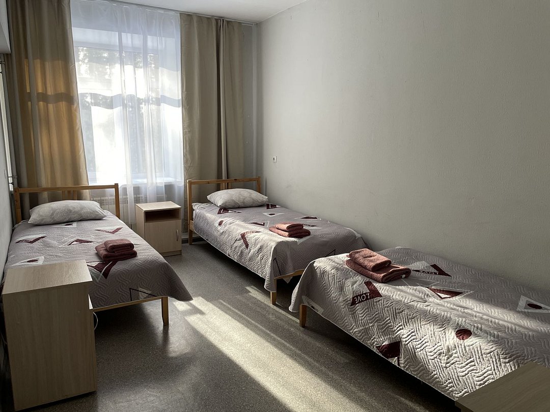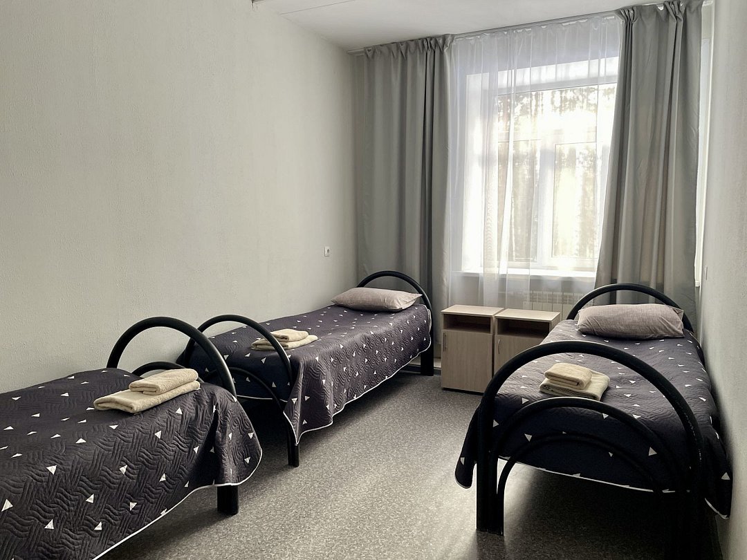 Гостиничные корпуса базы предлагают номера с односпальными или двуспальными кроватями, оборудованные всей необходимой мебелью и санузлами с душем.