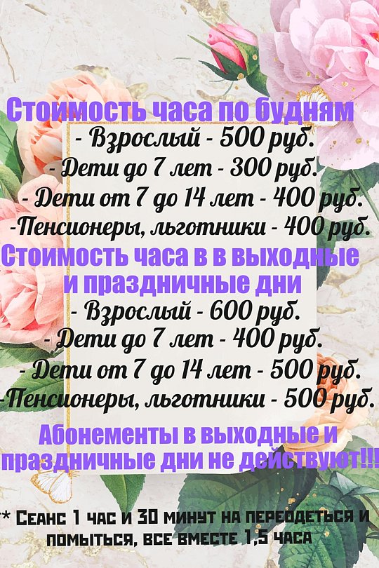Для посещения потребуется шапочка и справка, для детей младше 10 лет дополнительно анализ на энтеробиоз.
