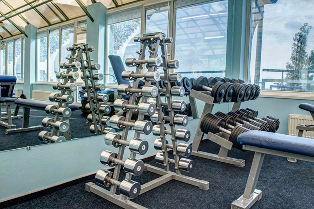 Просторный тренажерный зал, оснащенный всем необходимым современным оборудованием, который размещен на огромной веранде, расположенной прямо на крыше отеля с великолепной панорамой на море и горы.