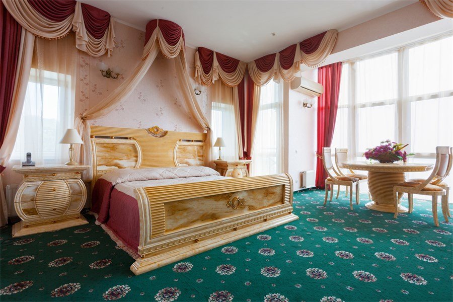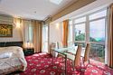 спутниковое телевидение, Wi-Fi, телефон, холодильник, кондиционер, светильник, фен, ванная с джакузи, санузел, биде, халаты, пляжные полотенца, тапочки, гигиенические средства, балкон, терраса, кровать «King size», диван, тумбы, стулья, шкаф для одежды, гардеробная, вешалки, журнальный столик, обеденный стол, багажная тумба, зеркало, комод, эксклюзивная мебель, сейф, раковина, мягкая мебель, косметическое зеркало, ковровое покрытие, отопление, душ, вид на море, высокие потолки, стаканы, вид на парк, панорамные окна, номер для некурящих, можно с питомцамиВ гостиничном номере