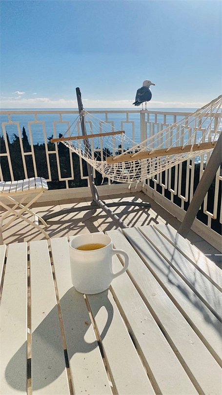 Wi-Fi, холодильник, кондиционер, банные полотенца, балкон, двуспальная кровать, обеденный стол, зеркало, набор посуды, чайник, душ, вид на море, кресло, стаканы, стул, стол, сушилка для белья, цифровое тв, телевизор с плоским экраном, затемняющая штора, можно с питомцамиВ номере