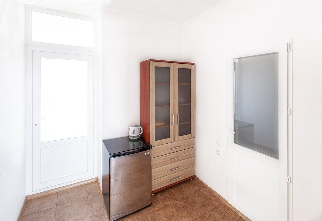 Номер «Базовый с мини-кухней» – это однокомнатный номер с ванной комнатой и отдельным выходом во внутренний дворик отеля. Площадь номера – 15 кв.м.. В номере: двухспальная кровать, кондиционер, настенное зеркало, мини-холодильник, письменный столик и светильники, телевизор, фен. К Вашим услугам: WI-FI, ванные принадлежности, набор полотенец. Номера расположены на 1 этаже.Услуги и удобства