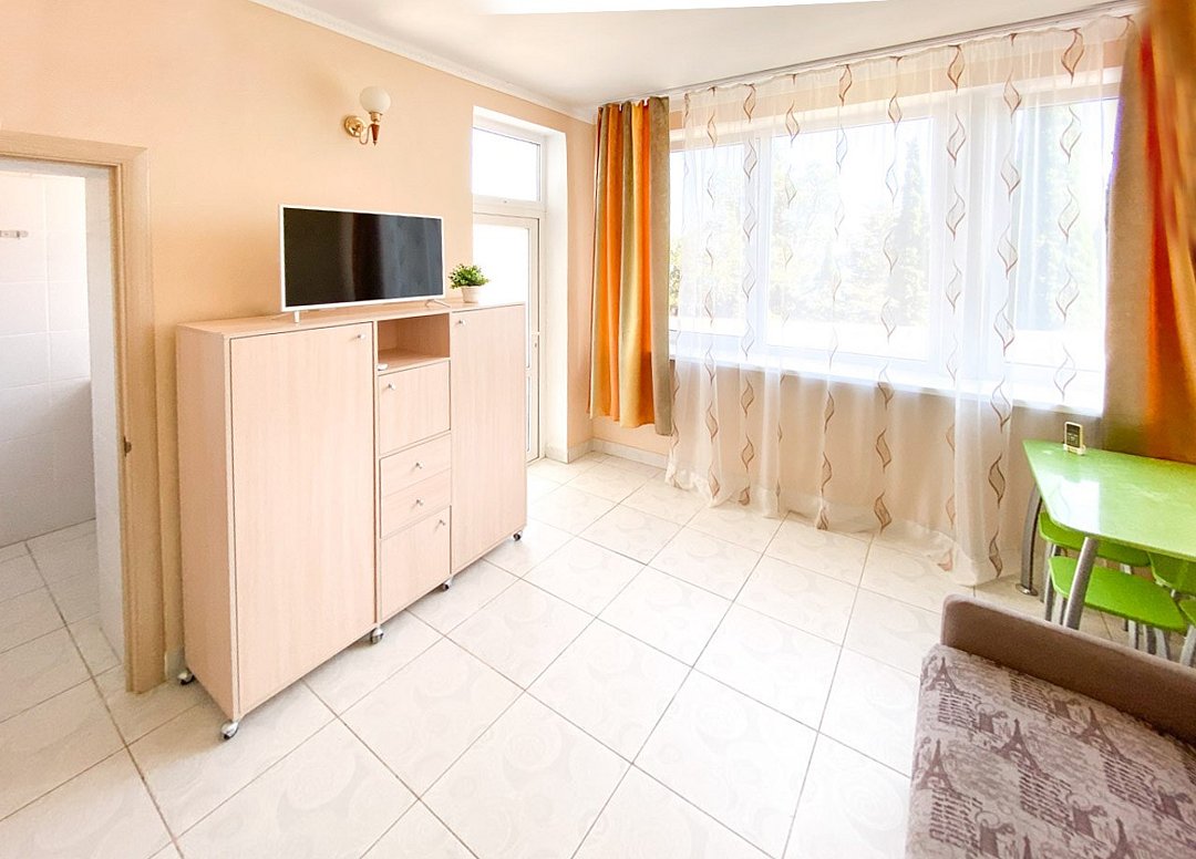 Номер «Апартаменты с мини-кухней» площадью 40 м2- двухкомнатный номер с ванной комнатой. Каждая деталь продумана для вашего комфорта: двуспальная кровать, диван, постельное белье, столик, телевизор, WI-FI, мини- кухня, обеденная зона, кондиционер, фен. Санузел оборудован: душевая кабина, набор полотенец, ванные принадлежности. Номер расположен на 1 этаже. Добро пожаловать в отель Эллада!Услуги и удобства