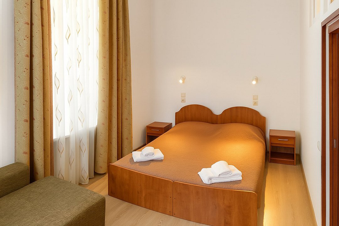 Номер «Базовый» – это однокомнатный номер с ванной комнатой. Площадь номера – 25 кв.м.. В номере: двухспальная кровать, кондиционер, настенное зеркало, мини-холодильник, письменный столик, светильники, телевизор, фен. К Вашим услугам: WI-FI, ванные принадлежности, набор полотенец. Номер расположен на 2-3 этаже. Добро пожаловать в отель Эллада!Услуги и удобства