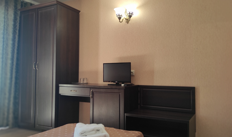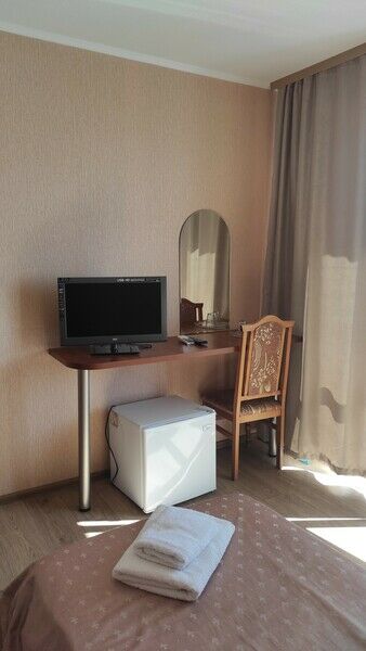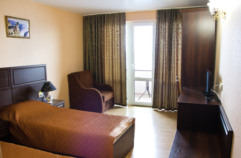 15 однокомнатных номеров класса "стандарт". В номере совмещенный санузел ( душевая кабинка, туалет, умывальник) телевизор, холодильник, кондиционер: сплит-система, фен, балкон с видом на море, площадь номеров от 15кв. до 20 кв.