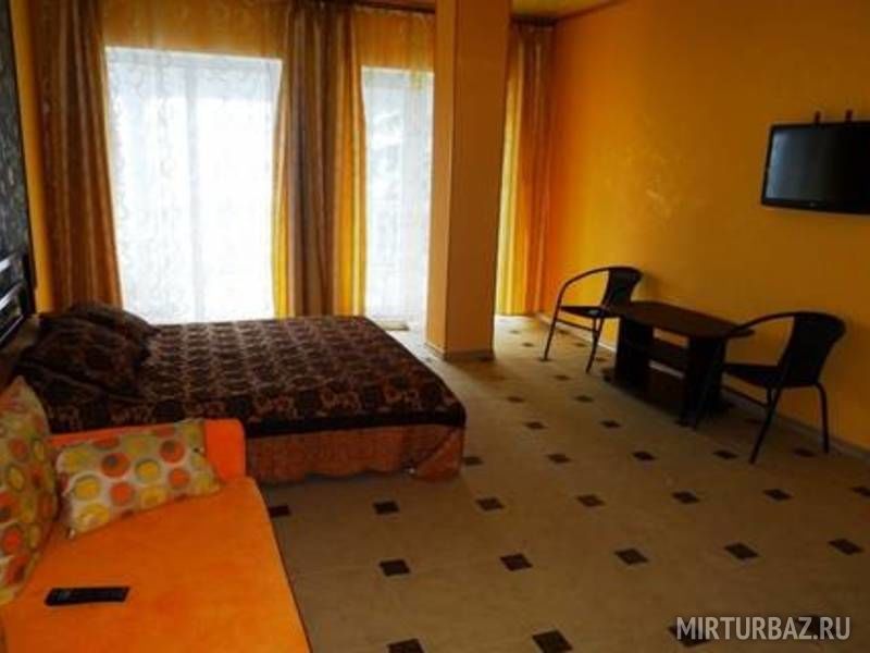 Два самых лучших из двухкомнатных номеров на 4 этаже, очень красивые и с прекраснейшим видом на море и горы. В номерах в одной комнате двуспальная кровать с ортопедическим матрацем, в другой большой угловой раскладной диван и кресло.