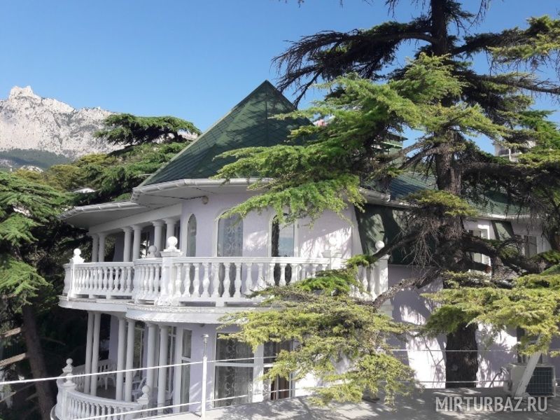 При гостевом доме большая придомовая территория, множество реликтовых деревьев, ливанские кедры, оливы, сосны, множество цветов, пальм, кустарников, имеется парковка для авто, общая кухня, мангал, барбекю, очень видовая площадка для приема пищи, качели, и беседка.