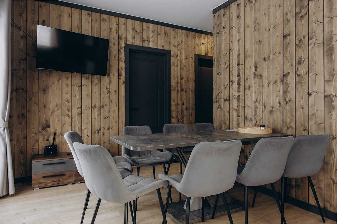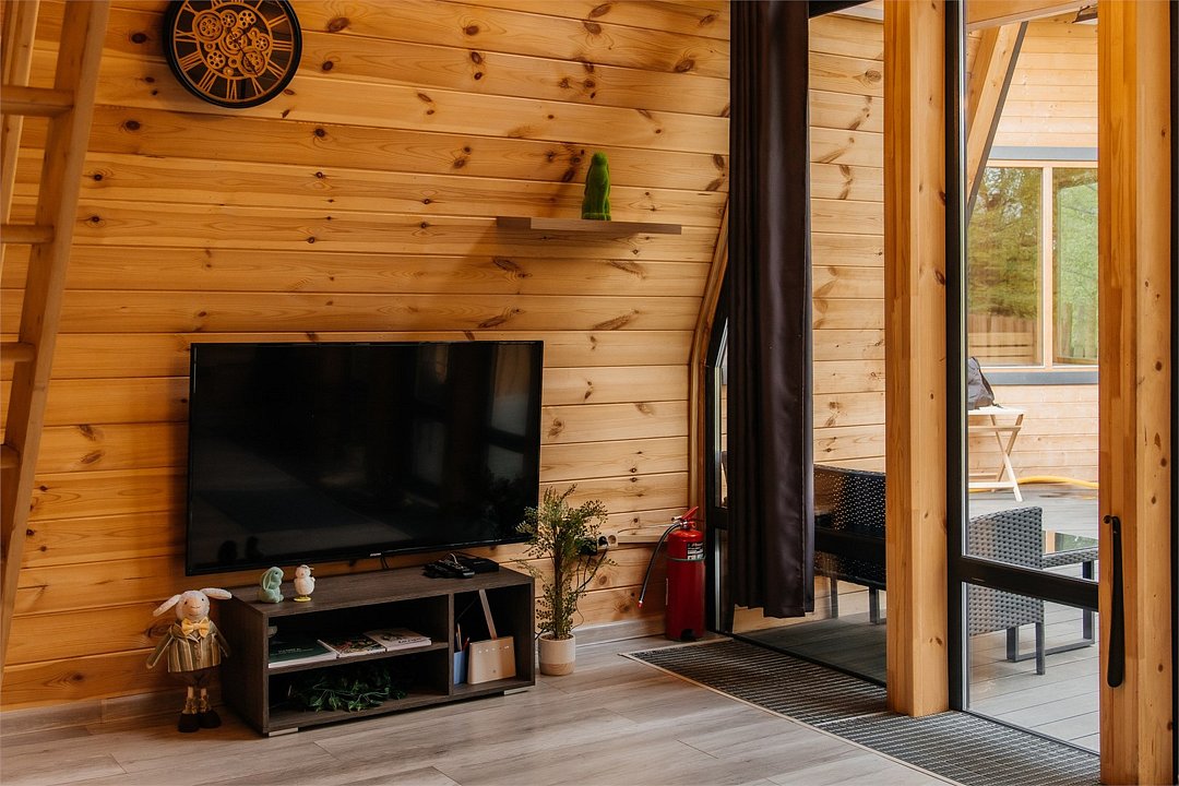 телевизор, интерактивное телевидение, Wi-Fi, интернет, кондиционер, фен, микроволновая печь, ванная комната, ванна, санузел, теплый пол, банные принадлежности, халаты, банные полотенца, тапочки, гигиенические средства, сауна, терраса, кровать «King size», две односпальные кровати, тумбы, стулья, шкаф для одежды, гардеробная, вешалки, обеденный стол, зеркало, ковер, информационная карта, меню, чайник, унитаз, питьевая вода, обеденная зона, душ, вид на реку, общая ванная комната, кухонная посуда, стаканы, столовые приборы, туалет, мангал, принадлежности для барбекю, панорамные окна, телевизор с плоским экраном, телевизор со Smart TV, теплые полы, вид на лес, антибактериальное средство для рук, уборка номера, бутилированная вода, веранда, кофеварка, окна от пола до потолка, можно с питомцами, лежанка, миска, пакетик для выгула, пеленка, баня, тропический душ, Android TV, уличная мебель, купельВ доме