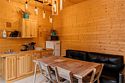 вухмодульный одноэтажный дом с современным и минималистичным дизайном. Твинхаус рассчитан на компанию до 11 человек, оснащен всеми удобствами, террасой с зоной барбекю, большими панорамными окнами, кухней, собственной сауной и купелью. В доме расположены 4 большие двуспальные кровати и 2 комфортных раскладных дивана. При заезде компанией до 4 человек включительно – предоставляется основной модуль с сауной, вторая часть твинхауса остается закрытой!Услуги и удобства